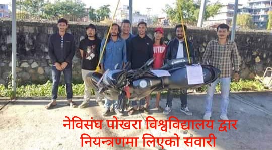 बिहिबार उक्त सवारी साधनलाई निजि प्रयोगको लागि चलाई रहेको अवस्थामा जफत गरि पोबिबी नेविसंघले प्रशासनलाई बुझाएको छ। पो.वि.वि को मातहतमा रहेको सवारी साधन दुरुप्रयोग भै भेटिएकाेमा खेद प्रकट गर्दै नेविसंघ पोखरा बिश्वबिद्यालयले कार्वाहीको माग समेत राखेको छ।